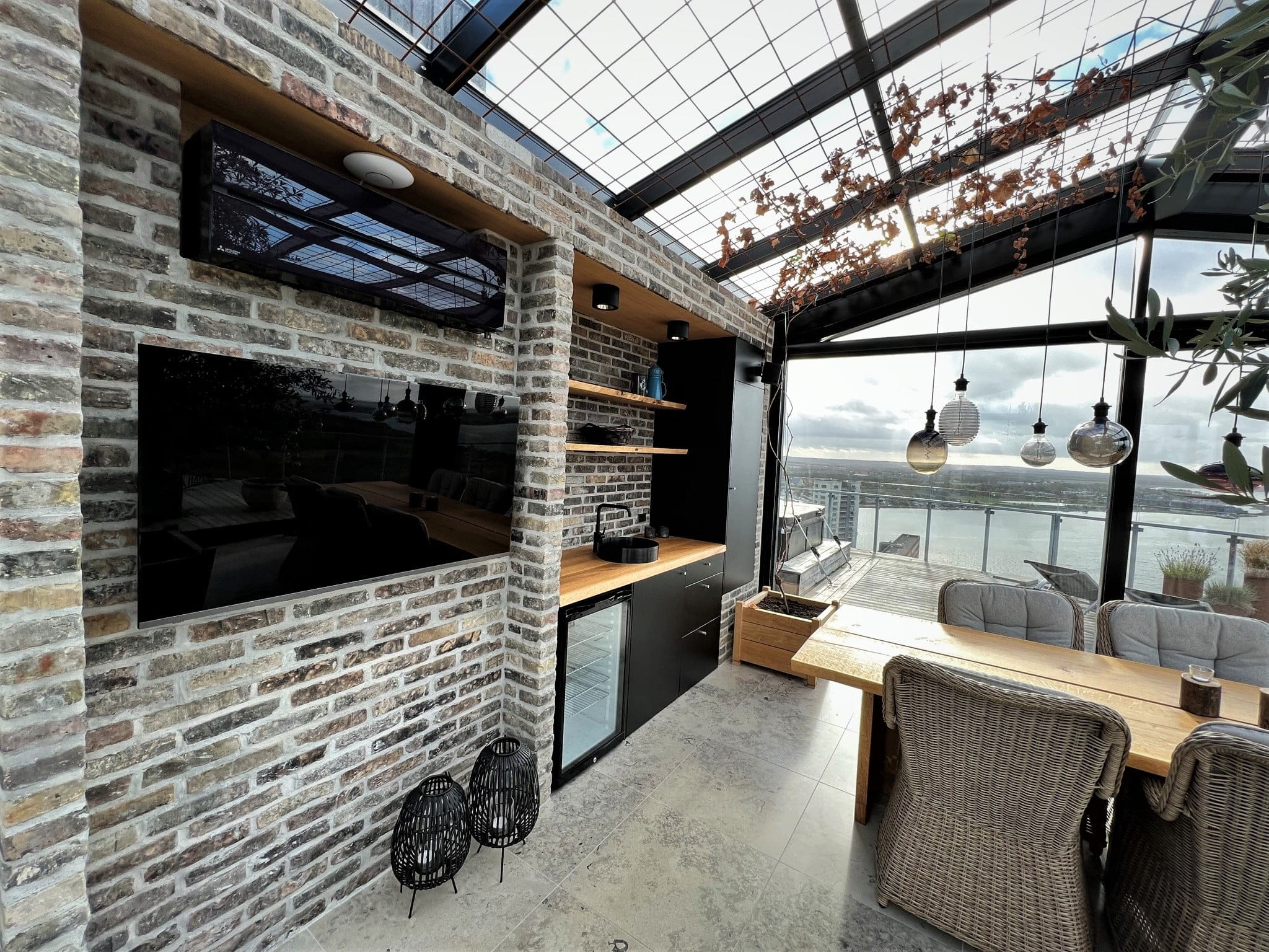Denne penthouselejlighed er udstyret med en række luksuriøse faciliteter, herunder en 236 kvadratmeter stor beboelsesdel, en enorm tagterrasse på 380 kvadratmeter med eget boblebad og et hyggeligt orangeri til at nyde årstiderne. Lejligheden inkluderer også en privat elevator, parkering, vinkælder og meget mere.